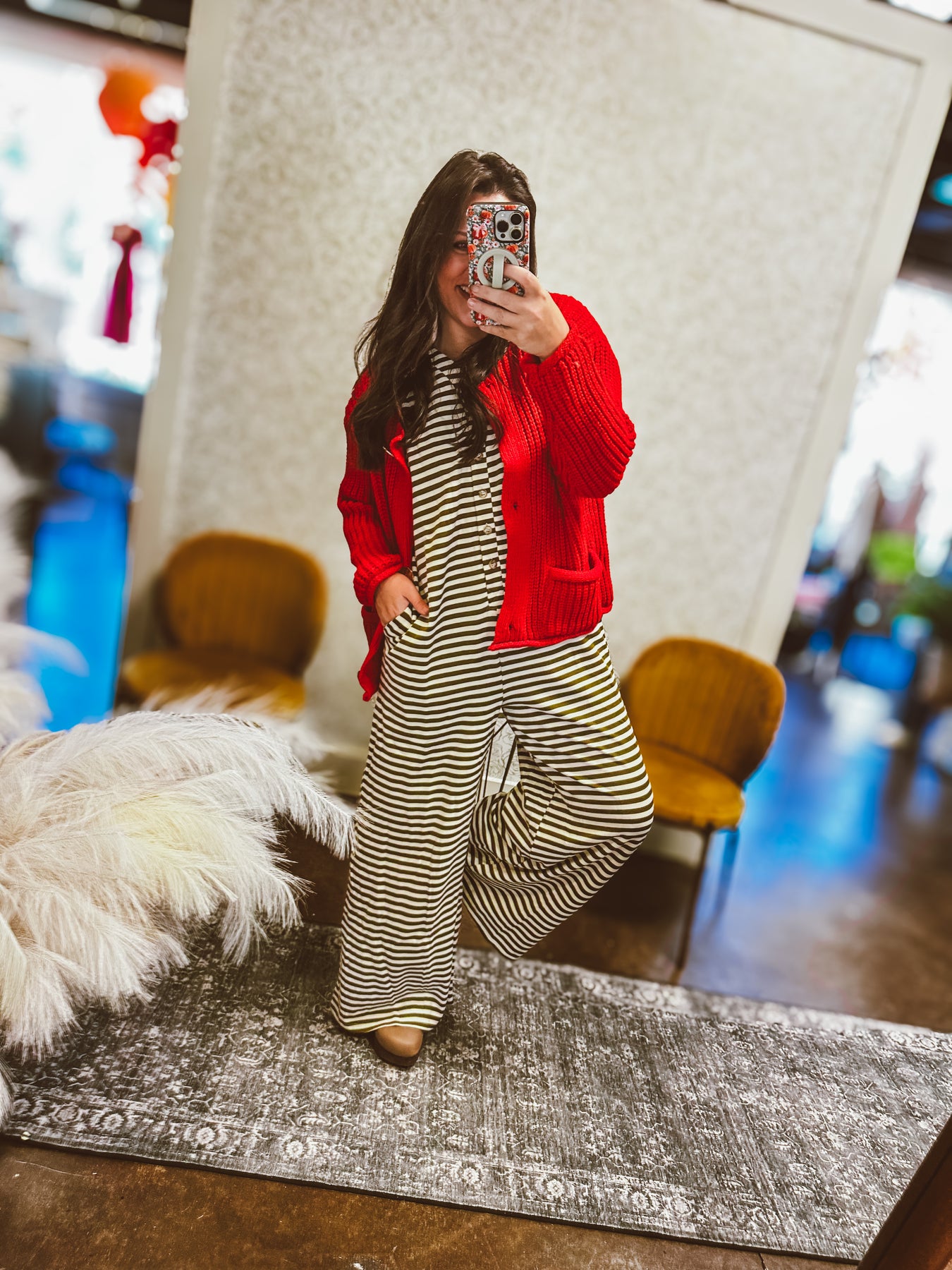 Slip into effortless style with our Chestnut Stripes Knit Jumpsuit! Featuring soft stripe knit fabric, side pockets, and a relaxed wide-leg fit — this one-piece wonder takes you from fall festivals to winter weekends with ease. Pair with boots and a cardigan for that cozy-chic layered look.