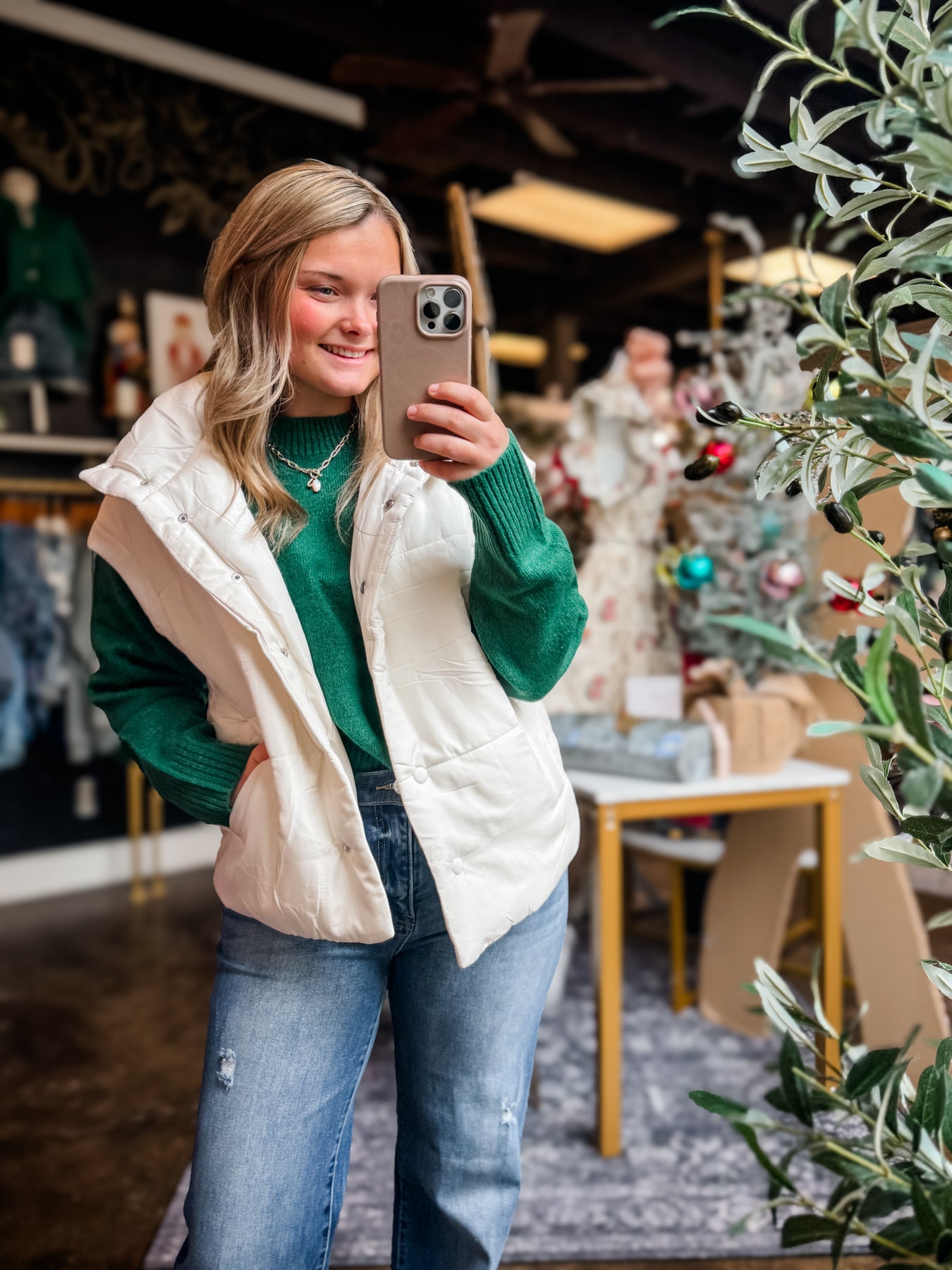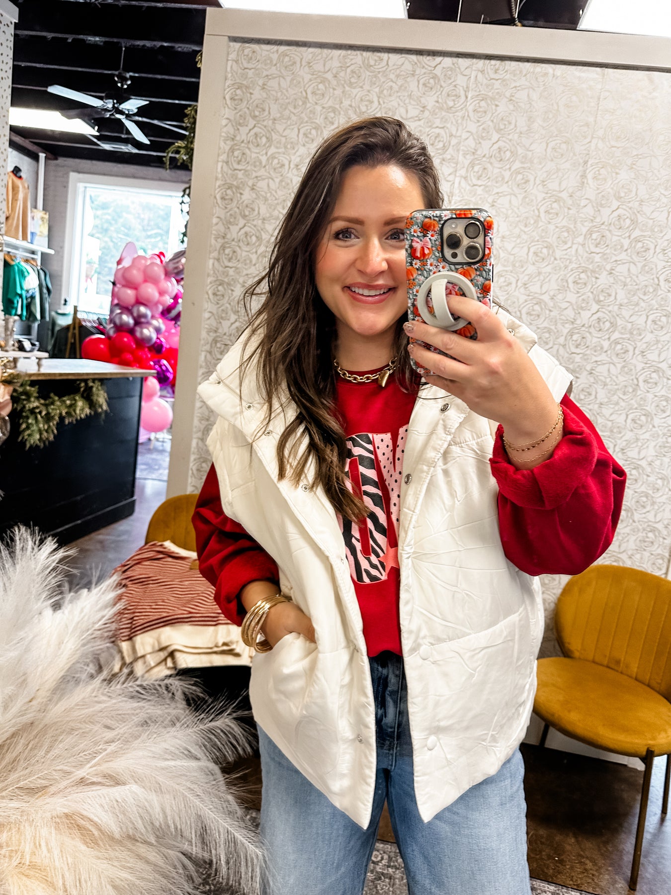 This oversized puffer vest brings all the cold-weather cozy vibes without the bulk. The mock neck keeps you warm, the snap buttons make layering easy, and the wide drop shoulders give it that elevated, modern silhouette. Perfect for running errands, holiday shopping, watching winter sports, or layering over sweaters for a stylish bundled-up look.
