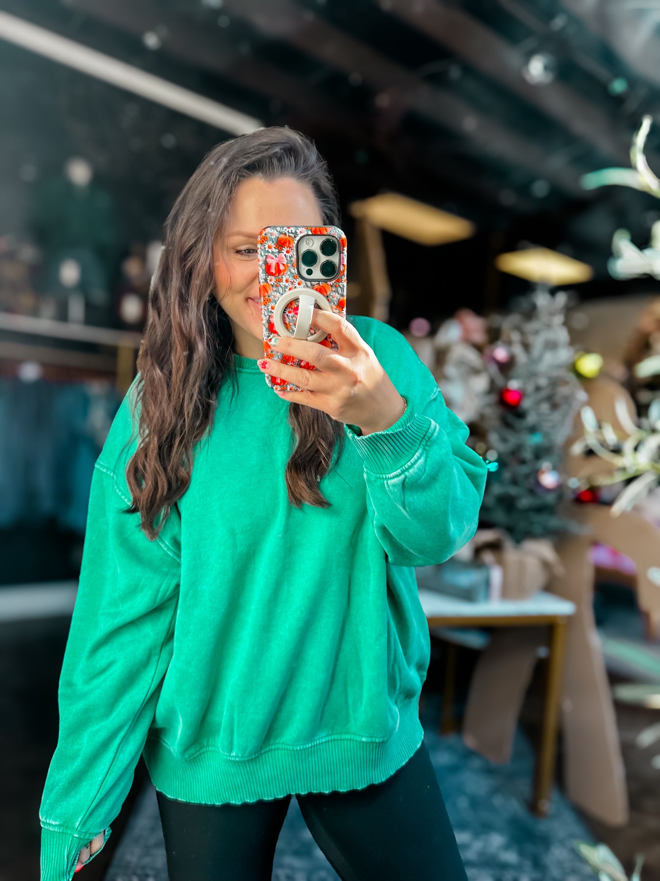 Easy, oversized, and effortlessly cool—this Friday Night Acid Wash Pullover is the kind of piece you throw on and instantly feel put together. Made from soft fleece with a lived-in acid wash finish, each pullover is one of a kind with natural variations in color and texture.